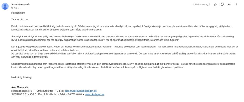 Socialdemokraterna har under åren i regering skärpt lagstiftning, stärkt tillsynen och gjort barnkonventionen till lag. Men vi är också tydliga med att mer behöver göras – särskilt för att stoppa oseriösa aktörer och säkerställa kvalitet i hela landet. Jag delar uppfattningen att barns rättigheter aldrig får relativiseras. Just därför behöver vi fokusera på de åtgärder som faktiskt gör skillnad i praktiken.